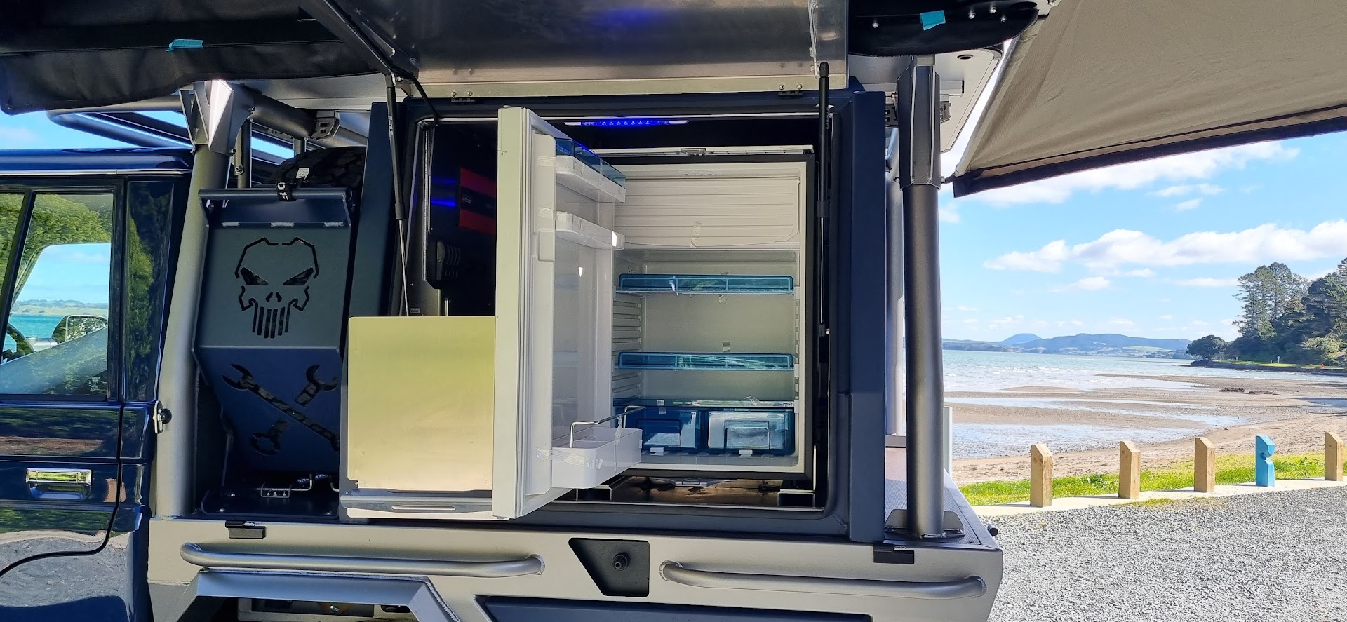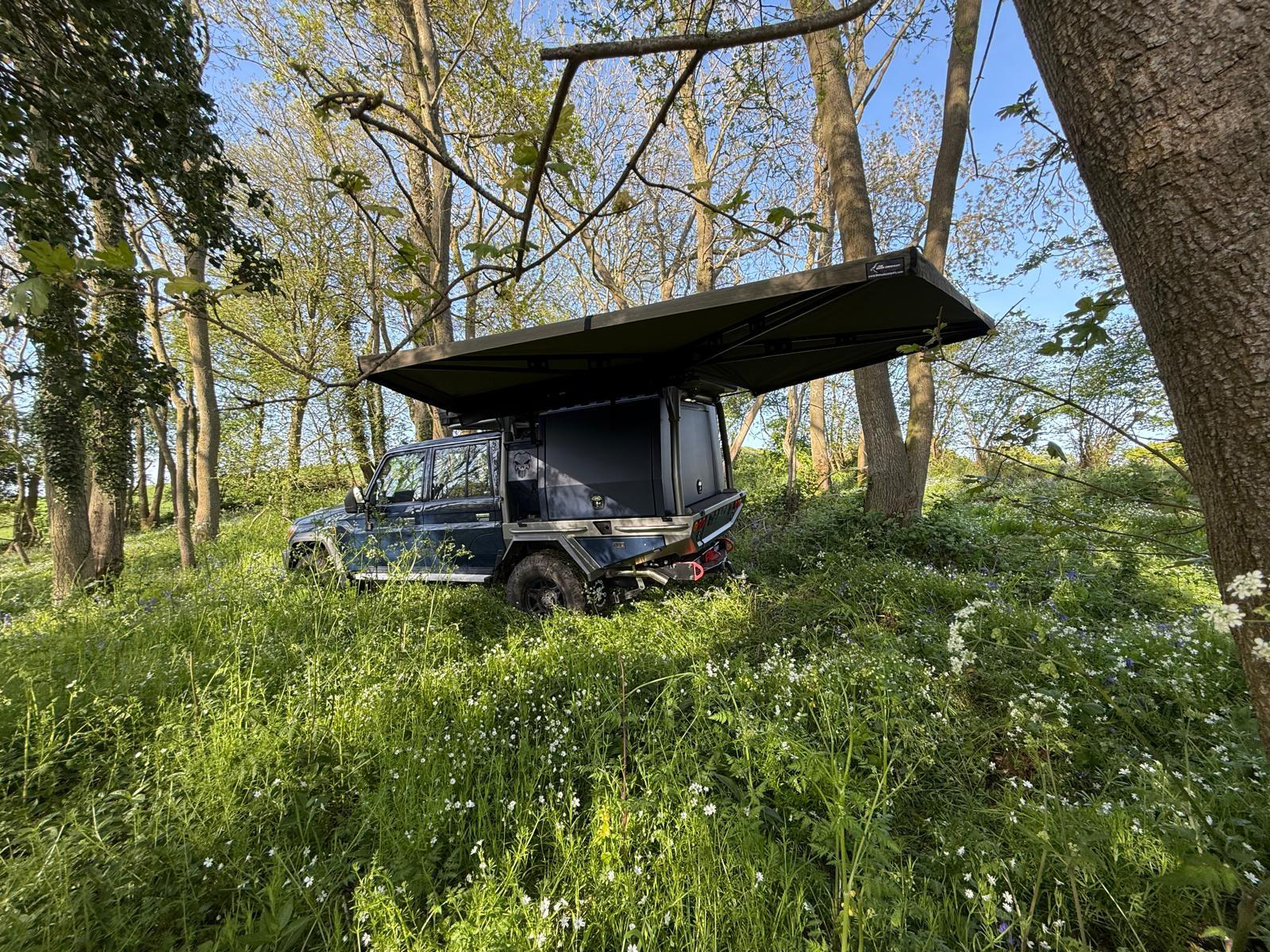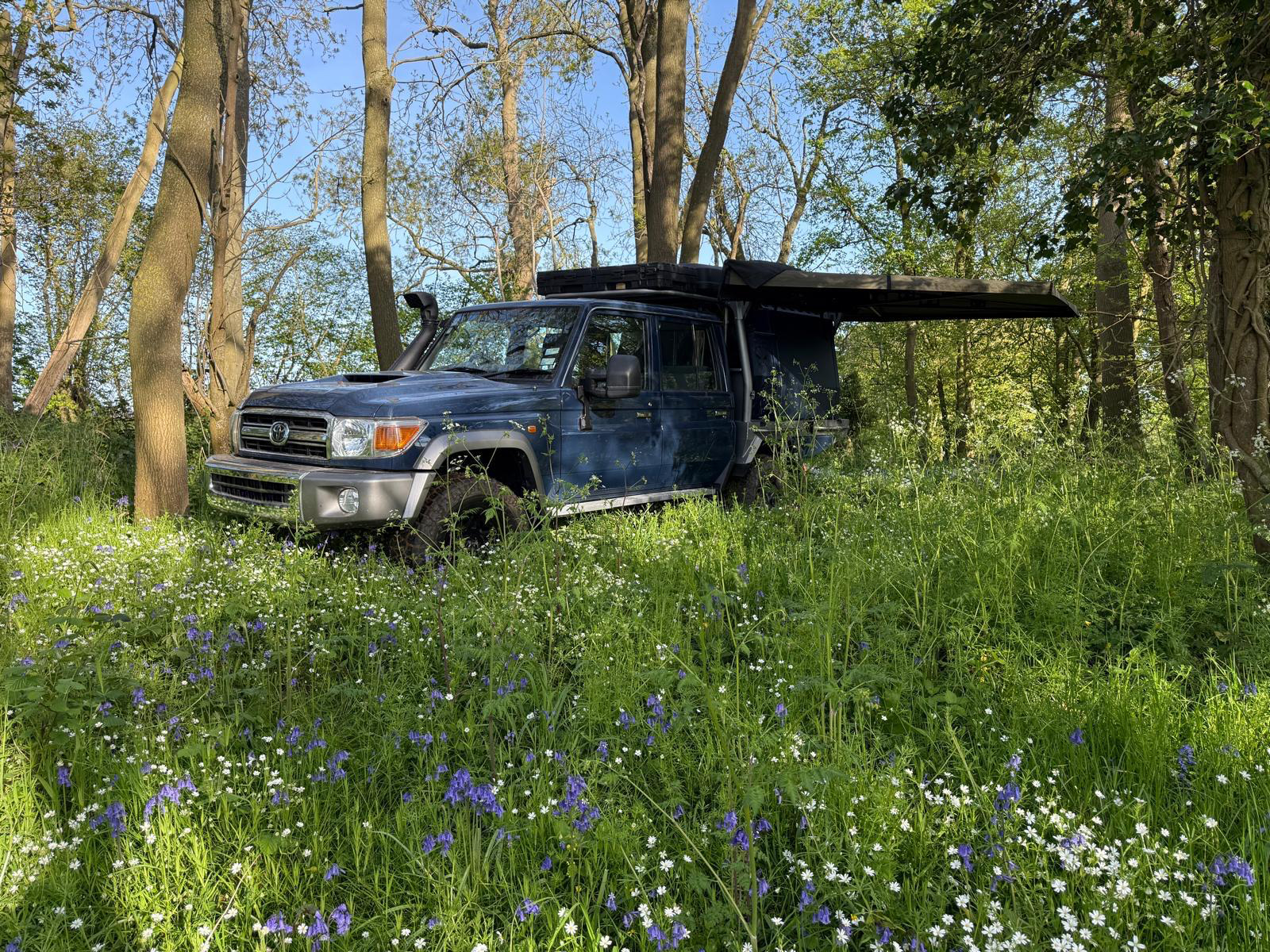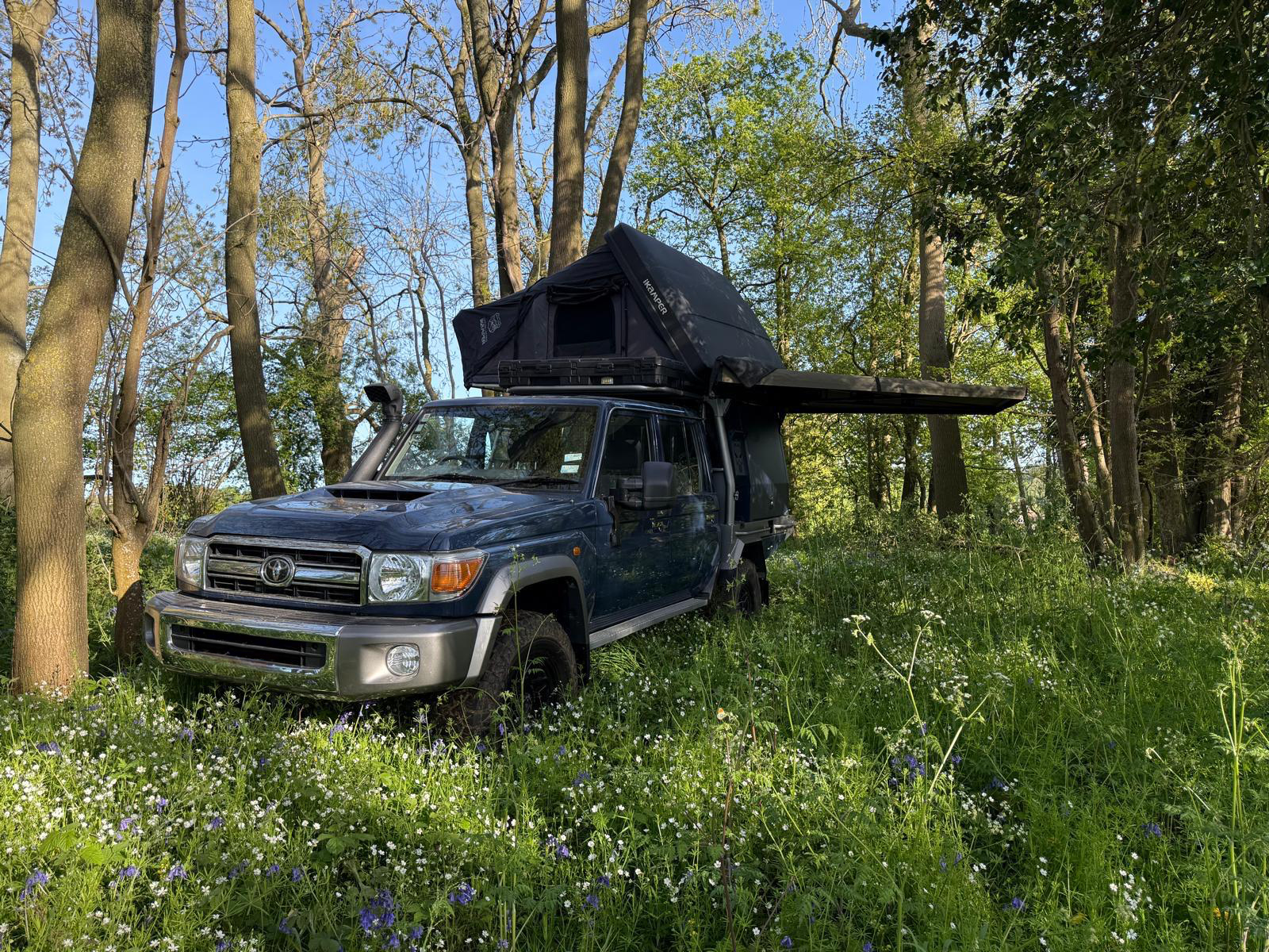 Ultimate Overland Expedition Vehicle Engineered for off-grid performance, this fully equipped 4×4 overland rig blends rugged durability with modern convenience. Built on a heavy-duty Toyota Land Cruiser 79 Series platform, it includes a full canopy system with a rooftop tent, 270″ swing-out awning, and rear-access utility ladder. Inside the canopy, you’ll find a built-in fridge/freezer, custom racking, integrated storage lighting, and utility panels-making it the perfect mobile kitchen or gear hub. Finished in matte navy with black accents, the vehicle also boasts all-terrain tires, rock sliders, a snorkel, and reinforced steel bumpers for serious backcountry exploration. From weekend adventures to cross-continent expeditions, this vehicle is ready to go wherever you are.